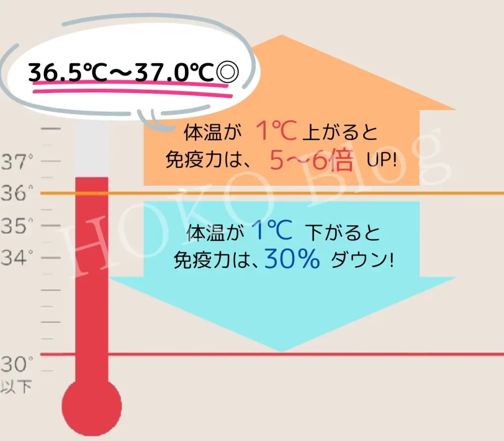 体温が1℃下がる → 免疫力は約30%低下する